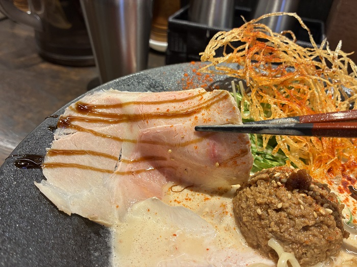 鶏チャーシュー: さっぱりとしていて、濃厚スープの箸休めに最適。