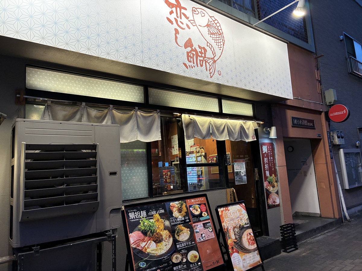 大きな通りに面した可愛らしい鯛のイラストが目印のお店「鯛担麺専門店 恋し鯛」。